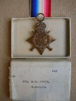 George Mundin Orton's 1914/15 Star, War and Victory medals. (Courtesy of Margaret Hlavacek & Mollie Atkins)